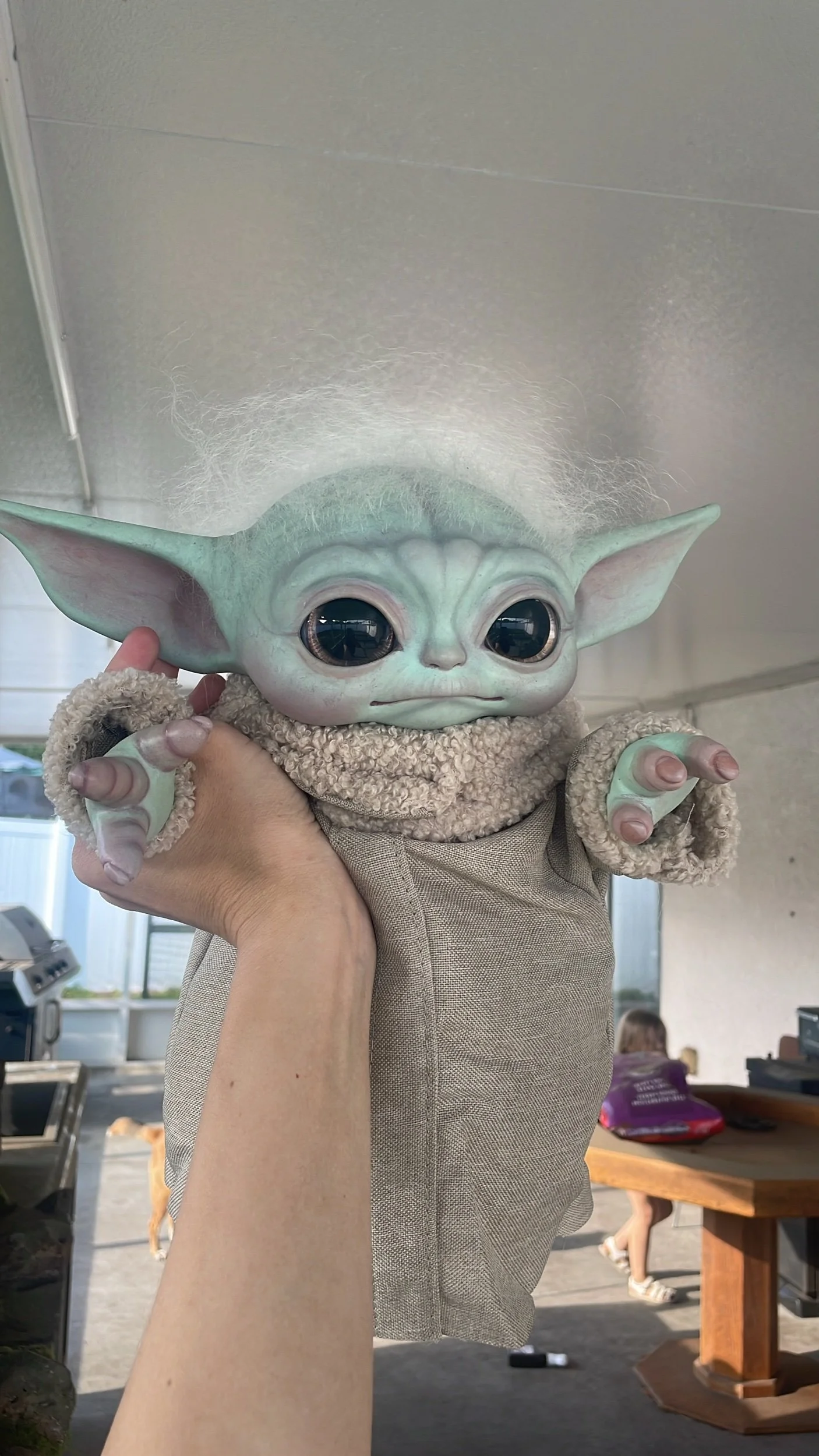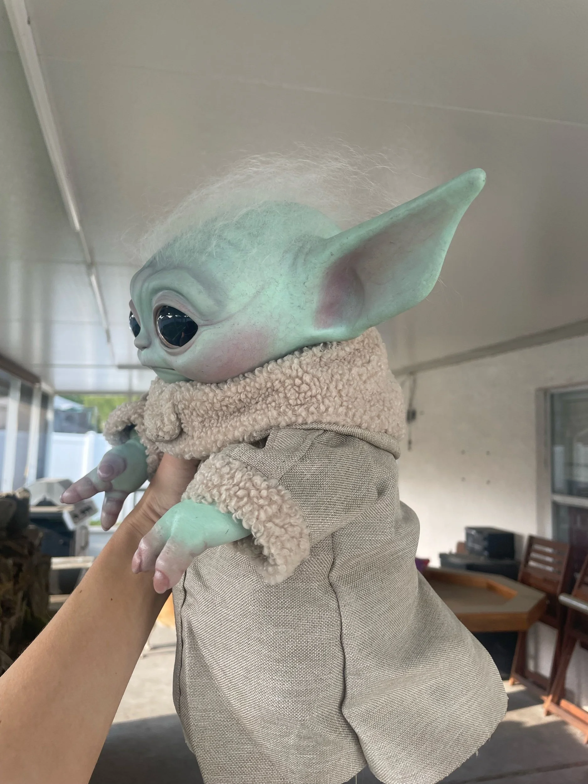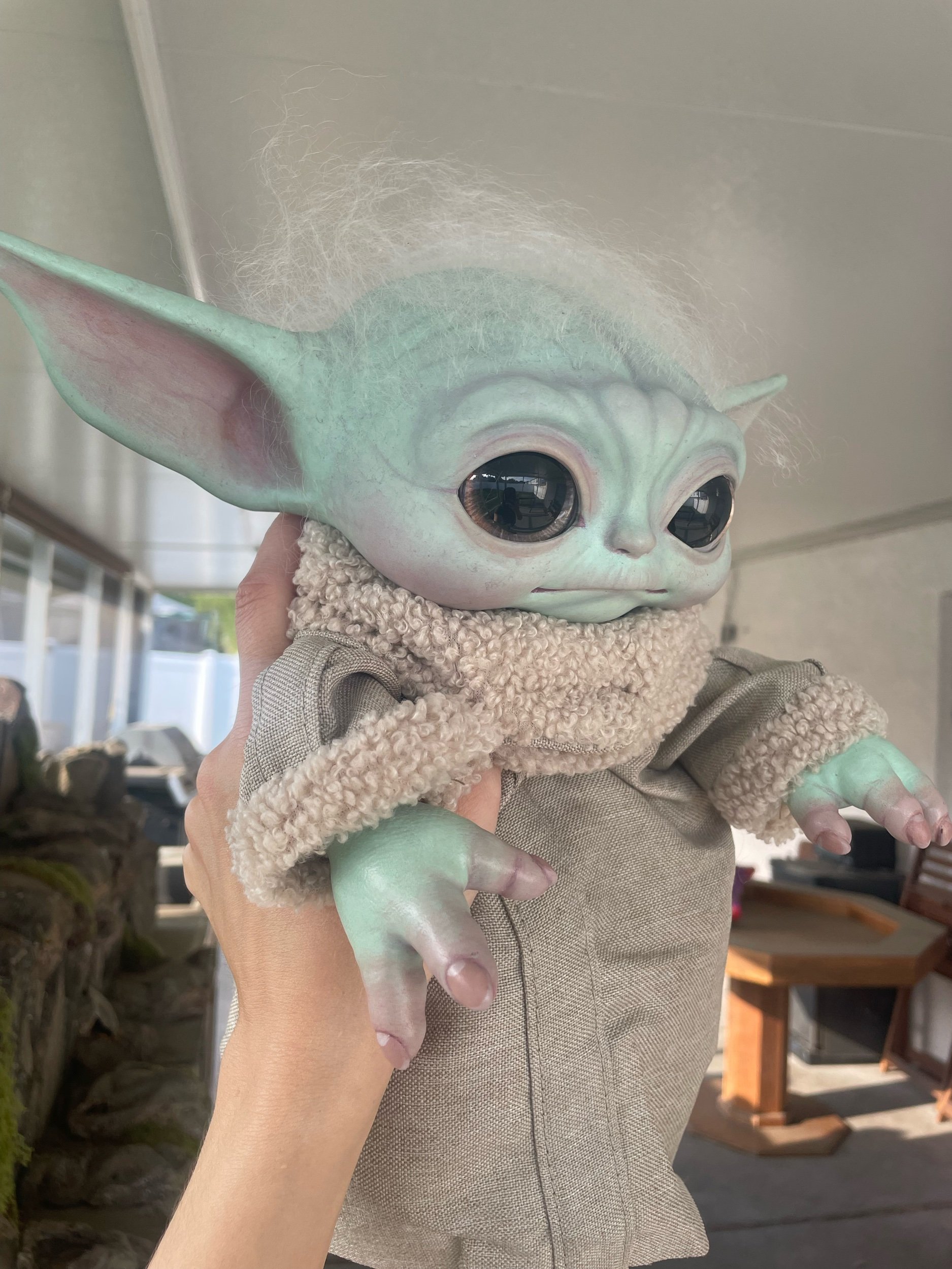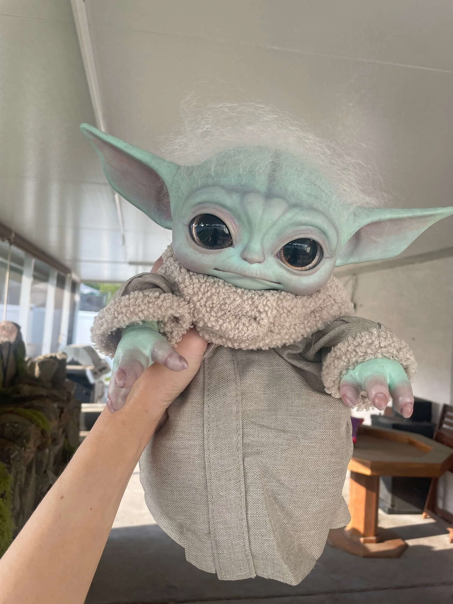 Image 1 of 4 Image 2 of 4 Image 3 of 4 Image 4 of 4 Rooted Reborn Grogu $325.00 sold out Probable arms, mohair, painted eyes, and reborn paint Sold Out Added! Probable arms, mohair, painted eyes, and reborn paint